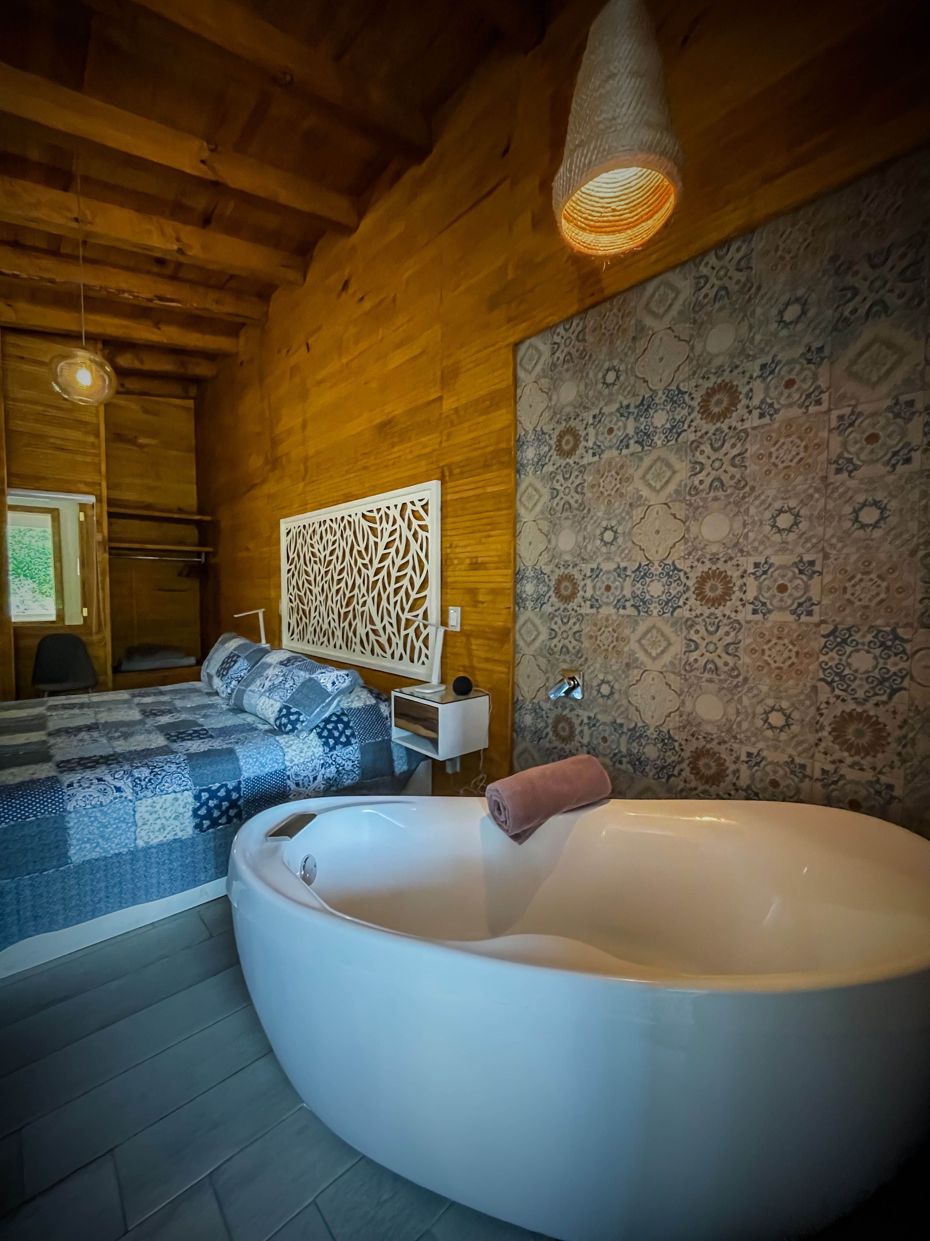 Cada suite esta elegantemenete decorada, brindando un ambiente romántico y acogedor. Rodeado de hermosas áreas verdes, los huéspedes pueden disfrutar de un sereno lago y una amplia terraza, perfectos para relajarse y conectarse con la naturaleza. "Casa Yeyetzi" es el destino ideal para quienes buscan una escapada íntima y sofisticada en un entorno natural espectacular.
